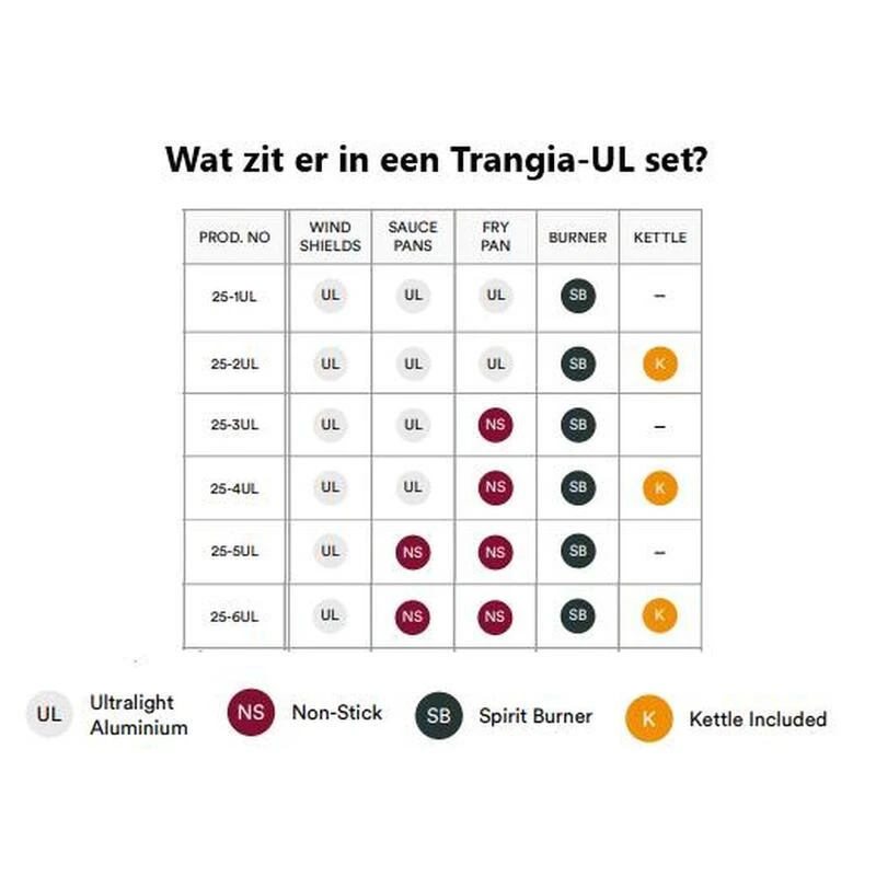 Cet appareil de cuisson Trangia de la série 25-UL est compact et léger. Il comprend un support de brûleur, un brûleur à alcool/esprit et différentes casseroles.